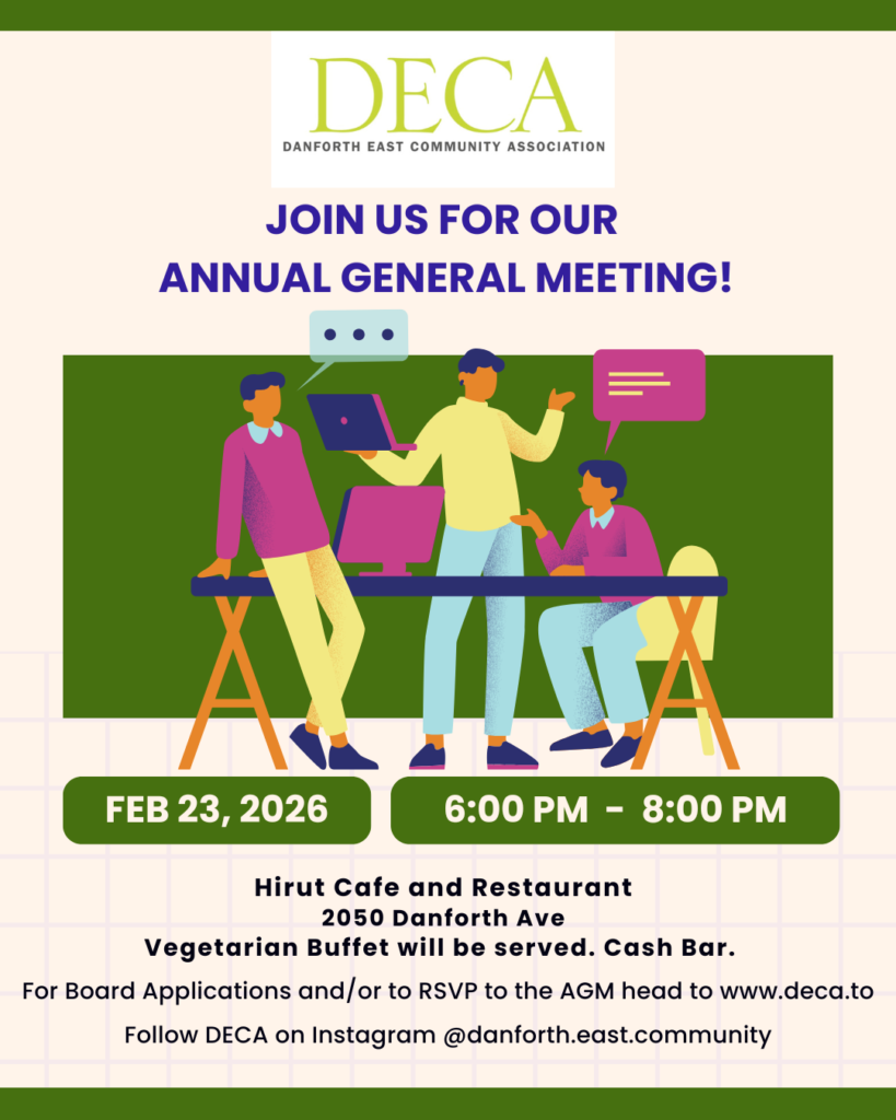 Hey neighbours! It’s time to emerge from our snowy winter burrows and meet up for a meal and a conversation at our favourite Ethiopian restaurant. Join DECA to plan for the coming year (yard sales, farmers’ markets, arts fairs and more!) and break injera together in a cozy atmosphere. Please RSVP so we can let Hirut know how much to cook!